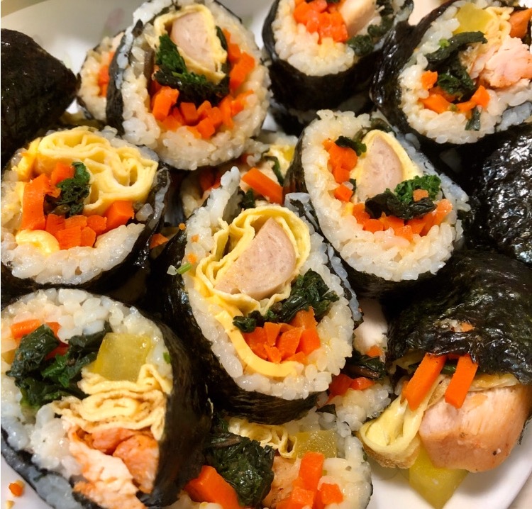 엄마와 저는 김밥말 때 밥보다 반찬을 많이 넣어서 확실히 씹히는 맛도 좋고~ 탄수화물 섭취도 줄일수있더라고요 ㅎ ^^ 다이어트용 김밥이죠?